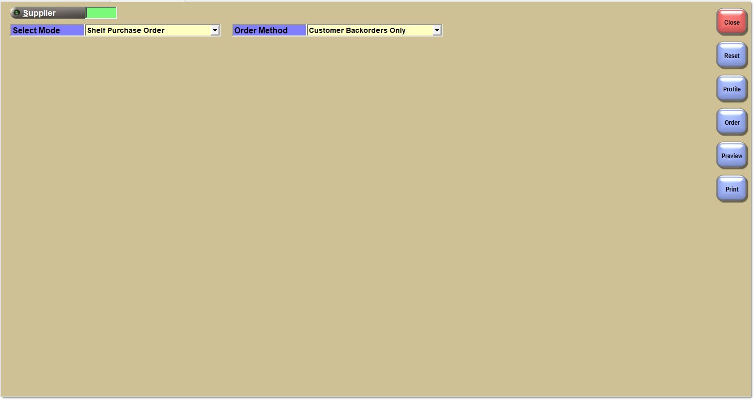 To order using the defaults, enter or select a Supplier in the 'Supplier' field and press the 'Enter' key. The screen refreshes with the 'Criteria' tab in focus.