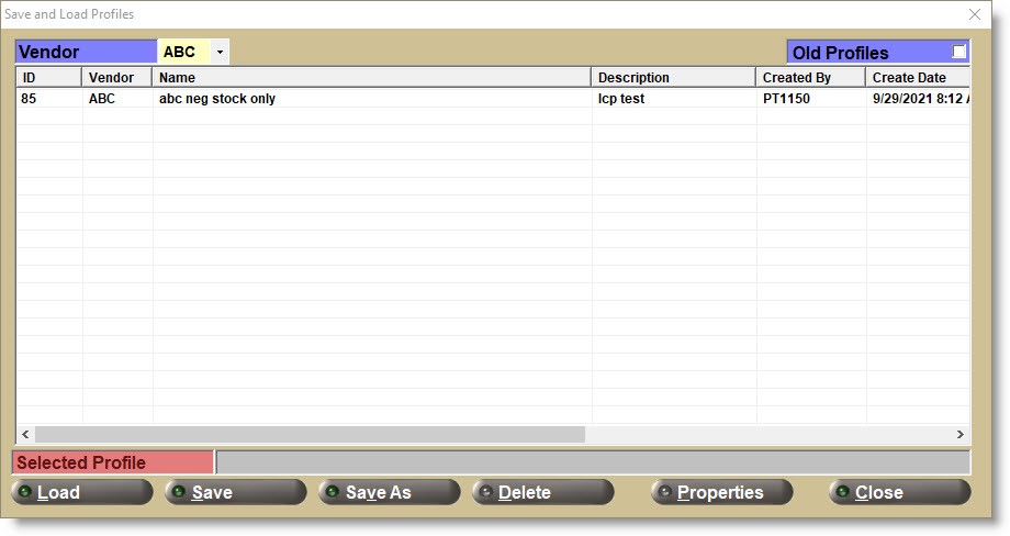 Double-click or highlight a row in the grid and click the 'Load' button to load the profile to use that profile for the order creation.