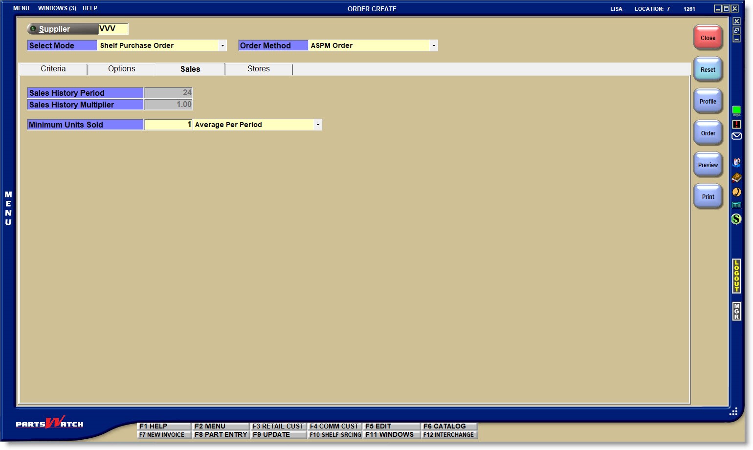 Note: Changing the 'Sales History Multiplier' will be used during order creation by all order and return order methods involving ASPM. Using a revised 'Sales History Multiplier' allows enough parts to be ordered for any number of months.