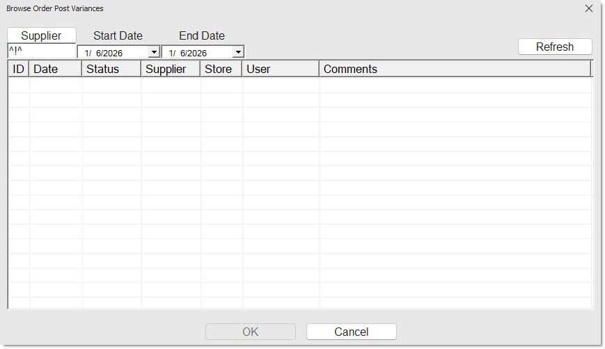 Menu Path: Purchasing, Order Post Variances, ORDER POST VARIANCES screen