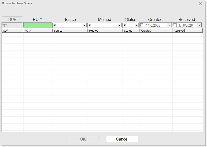 Browse Purchase Orders Window