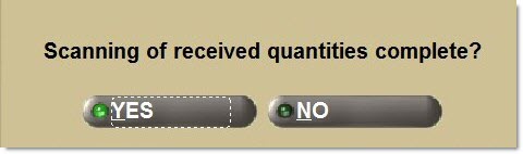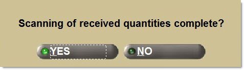 Displays a pop-up asking if "Scanning of received quantities complete?"