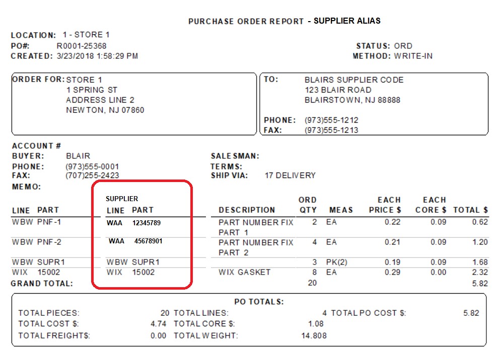 The following is an example of the 'PURCHASE ORDER REPORT - SUPPLIER ALIAS'.