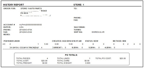 - 'FINALIZE' - Changes the PO from a preview to an actual PO by updating the 'ON ORDER' quantities in the part table. Assigns the PO a status of 'FINAL' and removes any items that were edited to a zero order quantity.