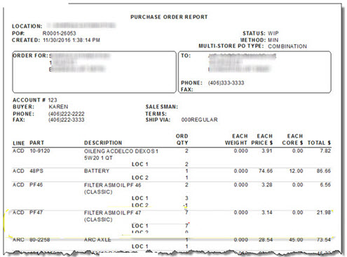 - 'INCLUDE' - Includes parts where the quantity ordered was zeroed out on the Purchase Order Report.