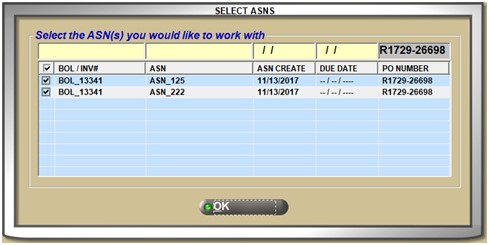 If an ASN attempts to apply to a PO and the PO is locked, the ASN is not able to apply to the PO. By default, it attempts to re-apply for 24 hours. This default can be changed by PWS Support. If the number of retries exceeds the time limit, a message is recorded to the SYSTEM MESSAGES screen, and application of the ASN is canceled.