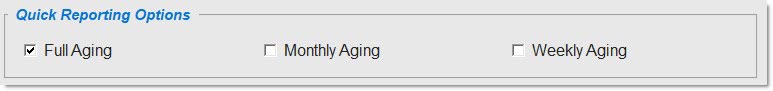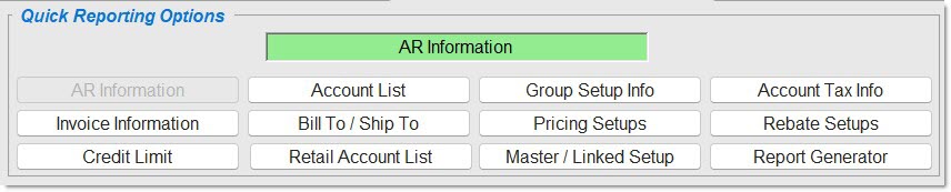 Quick Reporting Options - Available on report screens where more than one report can be output. Each different report on the screen is accessed with either a button or a checkbox.