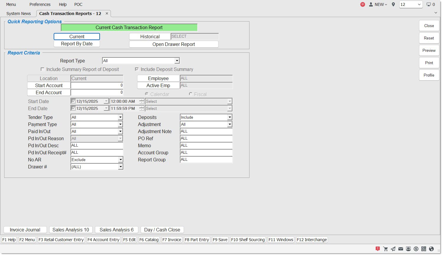Note: This report can also be run from the Day / Cash Close screen and also prints as part of the End-of-Day.