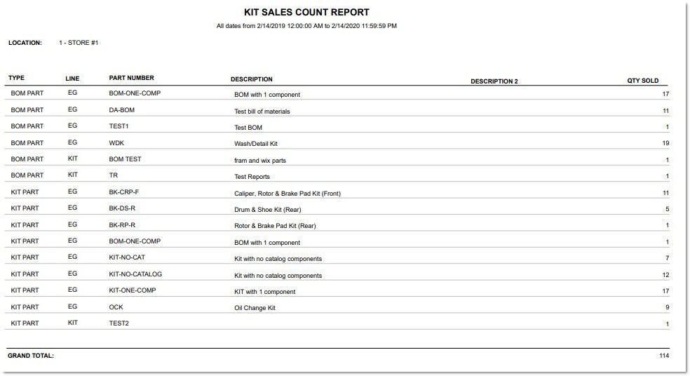 The aggregate quantity of all kits with this line and part number combination sold at Point-of-Sale.