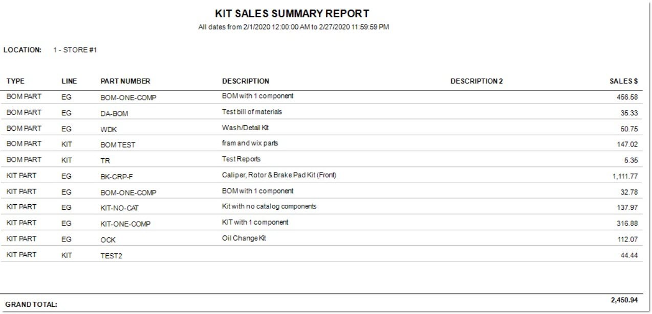 Run the 'Kit Sales Detail' report, which displays the total amount of all extended sell prices for all kits sold within the specified date range for that location. Then, breaks down the kits into components and displays further information about the kit breakdown.