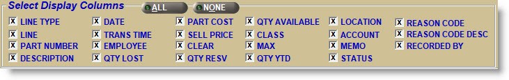 Most inventory reports have one or more of the following 'Report Criteria' filters: