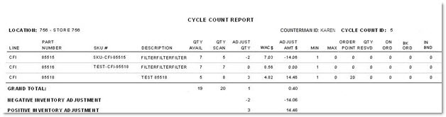 Cycle Count Report