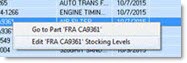 'Edit <line><part> Stocking Levels' - Displays the Stocking Level Edit screen with the part in focus to edit the stocking level.