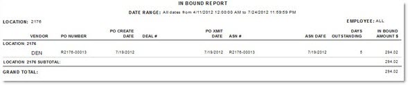 Generates the 'In Bound Report' that is a summary per PO that reports the quantities in transit (shipped but not received).