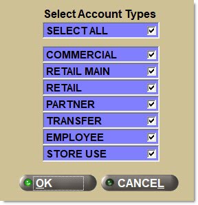 Filters by a commercial or retail account number or account code. (Includes retail account numbers that begin with R.) Leave blank to filter by all accounts. Click the button to display the 'Browse Accounts' window to search for a specific account. Displays the word 'Multiple' when multiple accounts are selected.