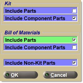 'Include Non-Kit Parts' - Includes non-kit parts in with the BOM parts in the report.