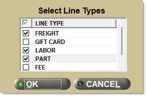Include any 'Line Type' by checking the checkbox(es). Check the checkbox in the header to report all line types. Uncheck the checkbox in the header to deselect all line types.