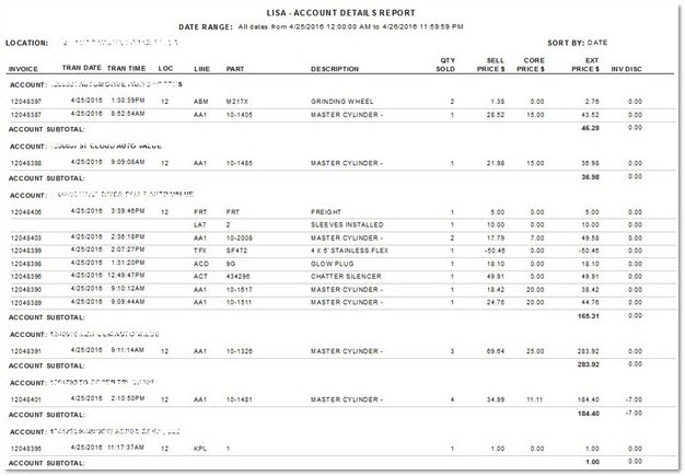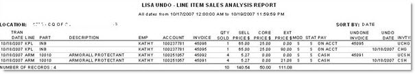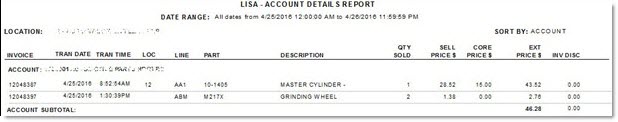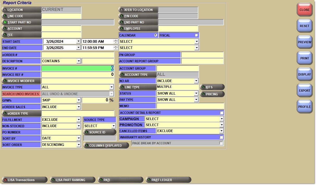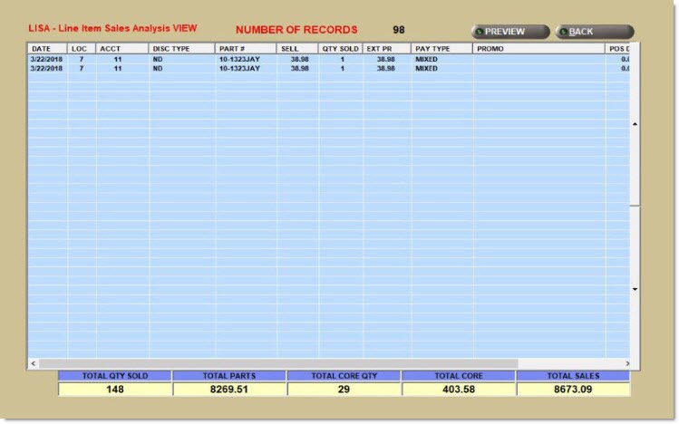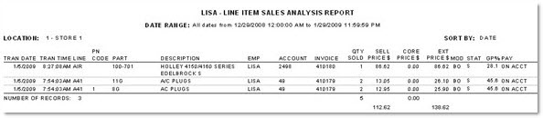 The LISA (Line Item Sales Analysis) Transactions Report tracks and reports, by part number, customer sales sold and returned at Point-of-Sale, for single store or multiple stores.