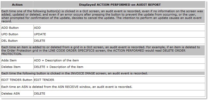 The Audit Report screen is used to report the GUI screens that were updated manually or by utility, and when. The report can be run for one or more stores, depending on a user's security access.