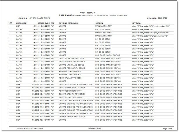 The Profile Copy Utility (PCU) is used to automate the pre-live setup tasks for all new stores. The PCU automatically updates field values on 50+ Control GUI screens for each new store going live. In addition, during the same go live time period, enterprise corporate and store users are also manually updating field values on the same Control GUI screens for the go live store, sometimes overriding field values updated by the PCU. An Audit table records GUI screen updates performed by users and the Go Live Automation utilities that are run, such as the PCU. Since GUI updates can be performed by multiple users in a store, whether within an enterprise or a single store, the Audit table tracks exactly which user login made the update. The Audit Report also tracks when another report is run in PartsWatch.