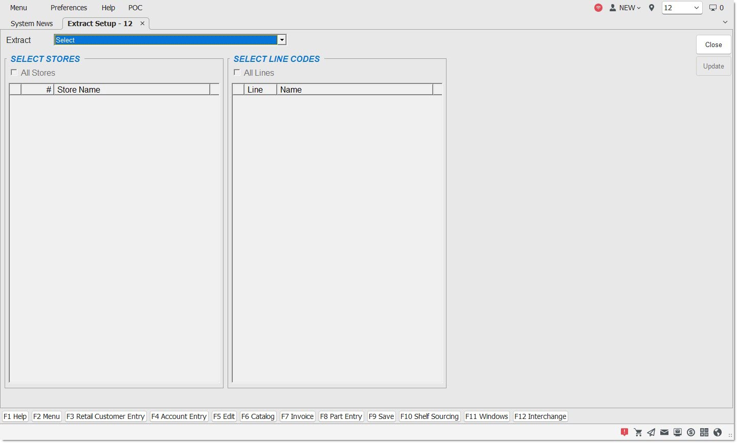 Menu Path: Utility Options, Extract Setup, Extract Setup screen